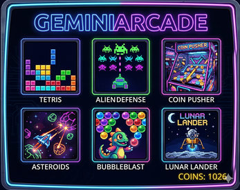 multiple arcade style games. this project was completely generated by ai using anti gravity and connecting it to godot through the godot mcp this was so fun to make as ai did all the work including ui layout and everything i just told it what i wanted.